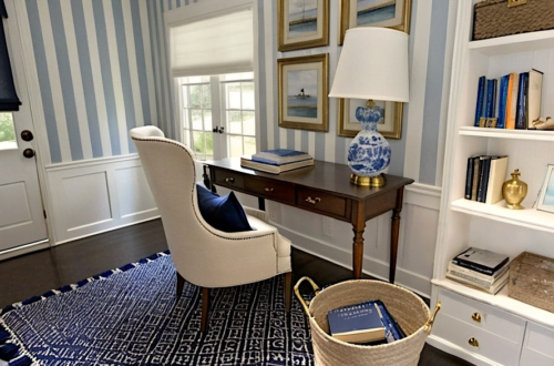 Any coastal style is clean and visually uncluttered. It starts with a simple color scheme white, blue and touches of warm sand or gold, and it ends with clean surfaces.